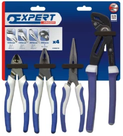 Expert By Facom E080818 4 Piece Pliers Set – Combination, Half-Round, Multi-Grip & Snips