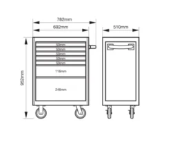 - 7 drawers heavy-duty tool trolley is based on a solid steel dual-walled case construction