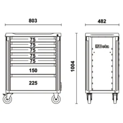 • 7 drawers (588×367 mm) with ball bearing slides:
