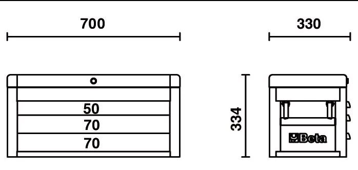 - 1 drawer, 50 mm high, 2 drawers, 70 mm high.