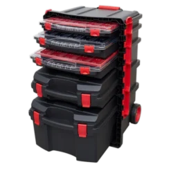 - Bright red inner lining for easy visibility of stored items.