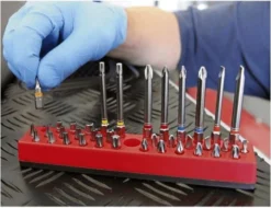 - Tidy storage for 1/4″ hexagon drive bits.