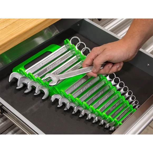 - Durable soft, non-marking TPR material spanner rack which helps to maintain an organised top chest/roll cab.