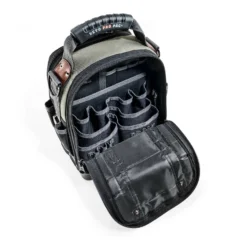 With 44 pockets inside and out and a center panel design, the Tech MCT has two storage bays with ample room for hand tools, meters, and a compact cordless drill, as well as smaller tool and accessories. It also includes D-rings, bit extension and memory stick pockets, and a stainless steel tape clip as well as a quick access outside pocket for drill bit extensions and small items. An over-molded ergonomic grip and a 3″ wide padded shoulder strap provide comfort for a potential load of 50 tools.