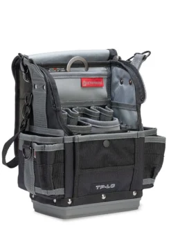 The TP-LC is a one-sided, closable, compact-sized tool pouch that holds a variety of tools, meters, fasteners & wire nuts. The exterior pockets include a weather resistant rear storage area ideal for sensitive probes. The zippered cover of the TP-LC provides greater weather & dust protection for techs needing a compact bag for service calls requiring just the minimum amount of tools.