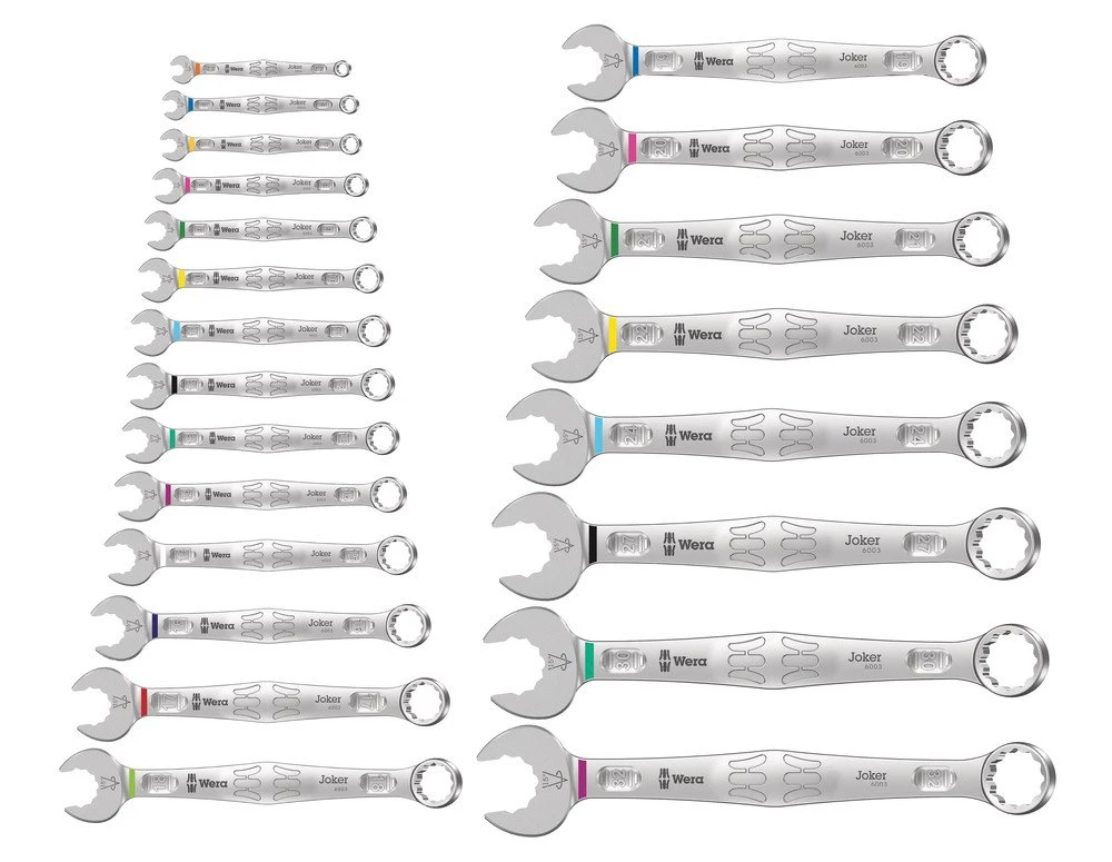 - 6003 Joker combination wrenches sizes: 5.5, 6, 7, 8, 9, 10, 11, 12, 13, 14, 15, 16, 17, 18, 19, 20, 21, 22, 24, 27, 30, 32mm